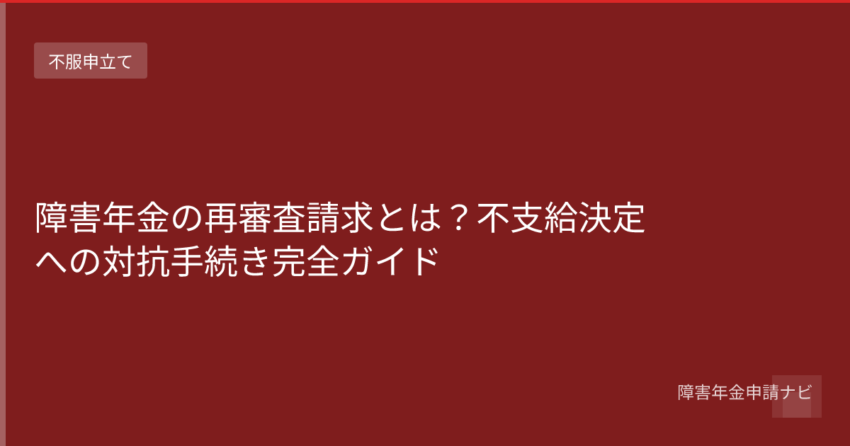 障害年金の不支給決定に納得できない場合の不服申立て制度を完全解説。再審査請求の手続き、必要書類、成功のポイントを詳しく説明し、行政救済制度の全体像を分かりやすくご紹介します。